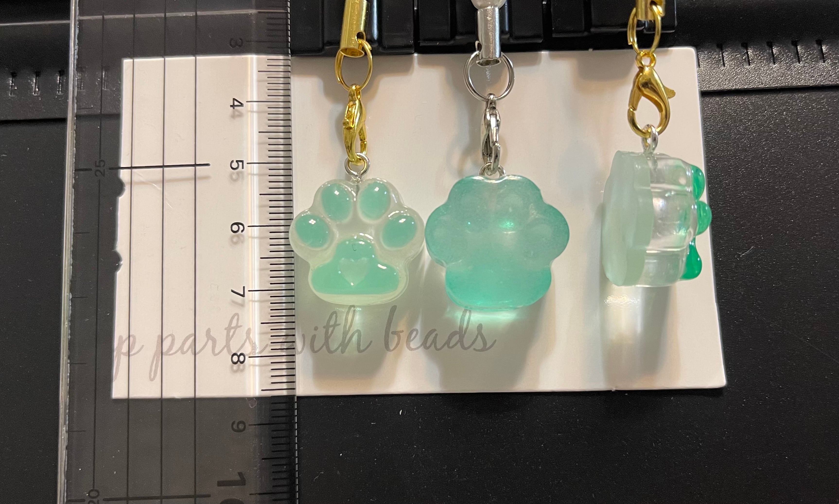 光る肉球レジンストラップ グリーン